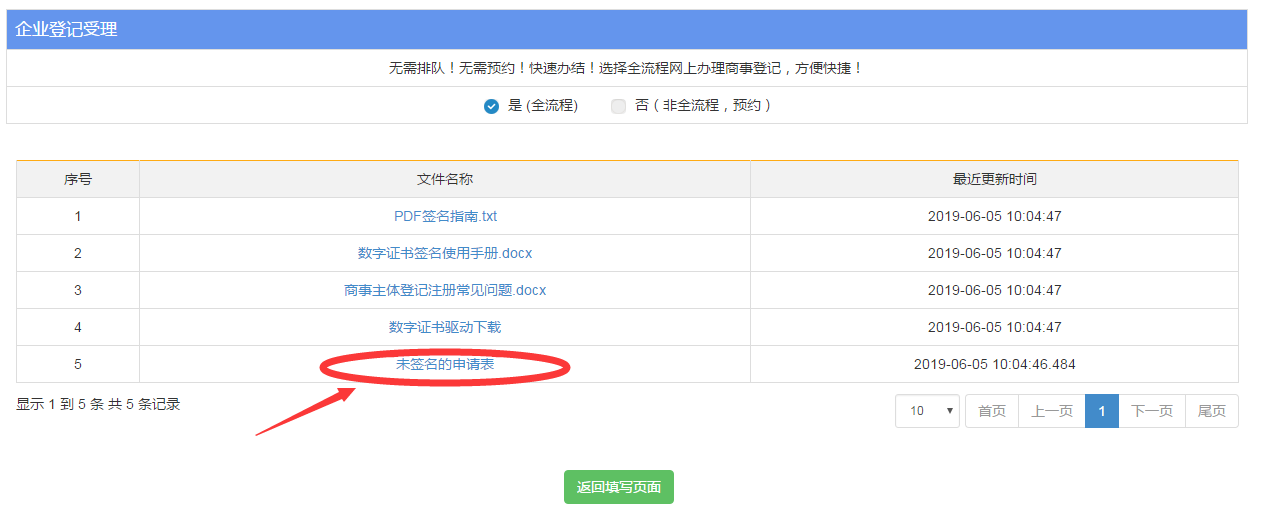 5、然后下載需要簽名的文件,使用U盾或者CA數(shù)字證書進(jìn)行簽名提交,等待審核通過領(lǐng)取營業(yè)執(zhí)照。