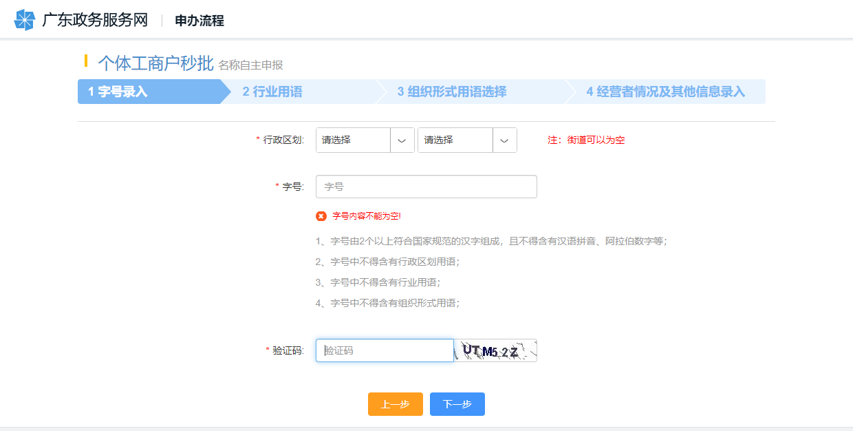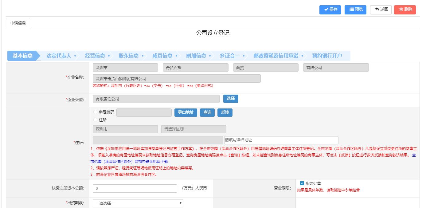4、核名通過后填寫注冊資料。
