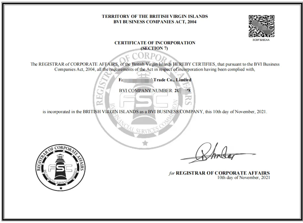 (英屬維爾京群島公司注冊(cè)證書(shū)樣本)
