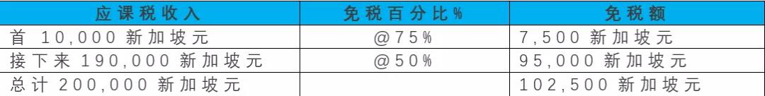 1.第一個10000新元的應(yīng)稅收入中的7500新元是免稅的;